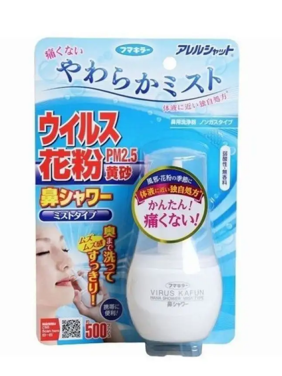 Отличное средство для борьбы с сезонной аллергией и вирусами!Эта прозрачная вуаль, содержащая запатентованный ингредиент и новый блокирующий ингредиент, подавляет прилипание мелких частиц пыльцы к коже. Всего лишь небольшое нанесение спрея подавляет прилипание пыльцы, частиц PM2,5 и вирусов вокруг носа и глаз.*Продукт не полностью предотвращает проникновение пыльцы, частиц PM2.5 и вирусов.*Помимо использования этого продукта, большей эффективности можно добиться с помощью таких мер, как мытье рук и полоскание горла.Данный спрей создает вокруг лица защитную оболочку из положительно заряженых ионов, тем самым блокирует попадание пыли, цветочной пыльцы и вирусов на слизистые оболочки носа и глаз.Абсолютно безвреден, не вызывает сонливости. Можно применять детям и беременным женщинам!Состав: положительно-заряженные ионы, молекулы окисленного титана, гиалуроновая кислота, вода.Способ употребления: Распылять в нос, через каждые 4 часа при необходимости.
